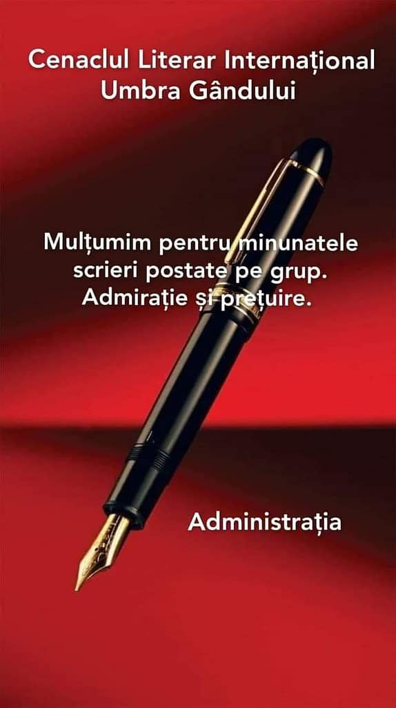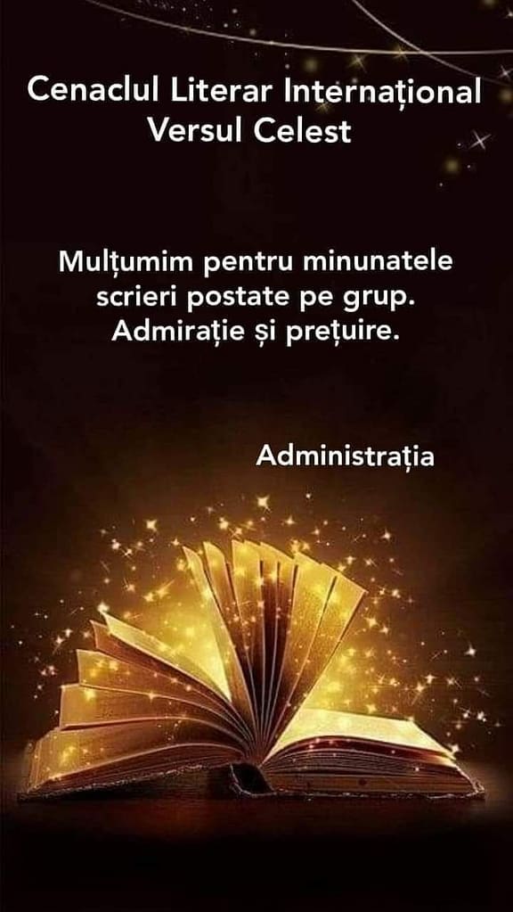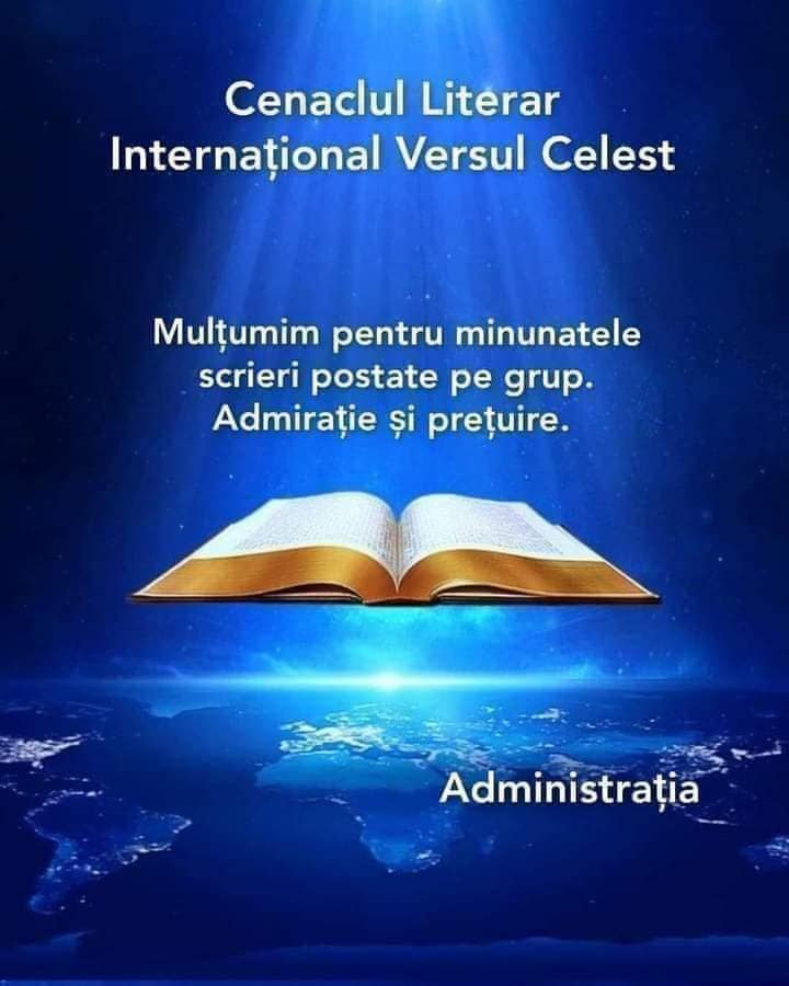 | Coman Claudiu Nicolae | Poezia poate fi scrisă doar de oameni cu un suflet curat și mare. Felicitări! Toată admirația mea! | |